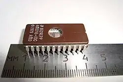 - EPROM (англ. erasable programmable read-only memory) — перепрограммируемое ПЗУ, например, содержимое микросхемы К573РФ1 стиралось при помощи ультрафиолетовой лампы. Для прохождения ультрафиолетовых лучей к кристаллу в корпусе микросхемы было предусмотрено окошко с кварцевым стеклом;