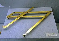 Существенно, что ведущее и ведомое плечо прибора, хотя и движущиеся согласно, представляют собой два разных тела. Поэтому радиусы кривизны, по которым движутся заданные точки на ведущем и ведомом плече могут быть сделаны неодинаковыми, и именно в этом и заключается смысл использования прибора, позволяющего воспроизводить любую кривую на плоскости в масштабе, определяемом отношением длин плеч.