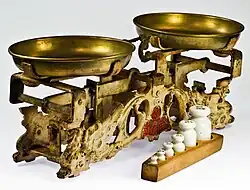 Торговые весы, чашки которых движутся поступательно, но не прямолинейно