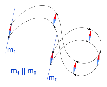 Математически поступательное движение по своему конечному результату эквивалентно параллельному переносу. Однако, рассматриваемое как физический процесс, оно представляет собой в трёхмерном пространстве вариант винтового движения (см. рисунок 2).