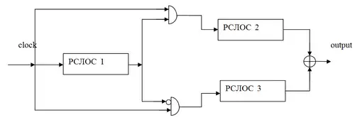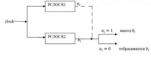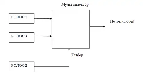 - длины регистров РСЛОС 1 и РСЛОС 2 должны быть взаимно простыми числами;