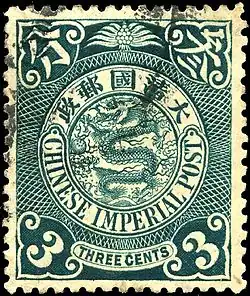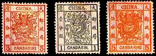 ![]() Первые почтовые марки Китая — «Большой дракон», 1878 (Sc #1—3) | |