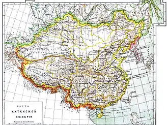 ![]() Карта Китайской империи на рубеже XX века (Энциклопедический словарь Брокгауза и Ефрона) |
