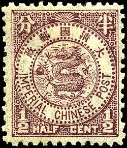 В 1878 году, после создания общегосударственной почты, для оплаты почтовых сборов были выпущены первые почтовые марки Китая — «Большой дракон» (Sc #1—3). На марках имелась надпись «CHINA» (Китай) на латинице и китайскими иероглифами. Номиналы на марках были указаны в кандаринах[4].
