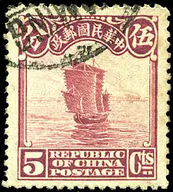 Марки стандартного «выпуска с джонкой» поступили в продажу 5 мая 1913 года (Sc #202—220) и имели хождение в 1910-х — 1930-х годах. На марках низких номиналов была изображена джонка, на марках с номиналами от 15 до 50 центов — крестьянин, собирающий урожай риса, на долларовых номиналах — тройные ворота в Храме Вофо («Лежащий Будда») в Пекине. Эта серия вначале печаталась в Лондоне (Sc #202—220), потом, с 1915 года, — в Пекине (Sc #221—239), что можно различить при внимательном осмотре марок. Рисунки на марках подверглись перегравировке в 1923 году (Sc #248—269), и ряд черт рисунка претерпел изменения. К примеру, исчезли пенистые гребни волн на воде под джонкой, а вода потемнела.