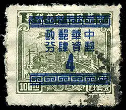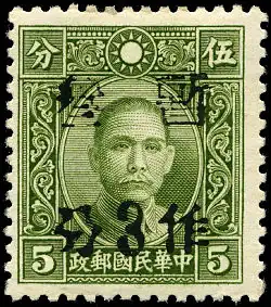 На протяжении всего 1945 года инфляция вызывала потребность во всё более высоких номиналах, но в 1946 году она вышла из-под контроля: на запасах марок, некоторые из которых относились ещё к 1931 году, ставились надпечатки номиналов до 2000 долларов, а на марке нового рисунка (но по-прежнему с портретом Сунь Ятсена) номиналы поднялись до 5000 долларов (Sc #646).