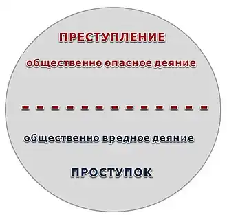 Все правонарушения принято подразделять на две группы: проступки и преступления, а в уголовных законодательствах, где существует трёхчленное деление преступных деяний, на три вида: преступление, проступок, нарушение (иногда полицейское нарушение)[4].