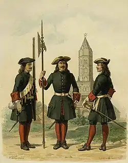- ↑ Илл. 387. Рядовые полков Лейб-Гвардии Преображенского и Московского. 4 августа 1862. (в парадной строевой форме) // Перемены в обмундировании и вооружении войск Российской Императорской армии с восшествия на престол Государя Императора Александра Николаевича (с дополнениями) : Составлено по Высочайшему повелению / Сост. Александр II (император российский), илл. Балашов Петр Иванович и Пиратский Карл Карлович. — СПб.: Военная типография, 1857—1881. — Тетради 1—111 : (С рисунками № 1—661). — 47×35 см.