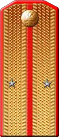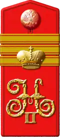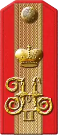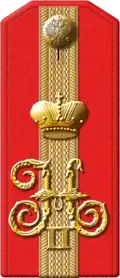 Генерал-майор | Полковник | Подполковник | Майор | Капитан | Штабс-капитан | Поручик | Подпоручик | Прапорщик[27] |