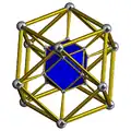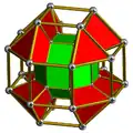 - 4-мерная призма, полученная из двух многогранников (один получен параллельным переносом другого), со связывающими 3-мерными призматическими ячейками. Из правильного многогранника {p, q} можно получить однородную 4-мерную призму, представленную произведением {p, q}×{}. Если многогранник является кубом и стороны призмы тоже кубы, призма превращается в тессеракт: {4, 3}×{} = {4, 3, 3}.
