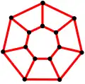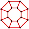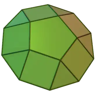 Пример: додекаэдральная призма, {5, 3}×{}, два параллельных додекаэдра, соединённых 12 пятиугольными призмами (сторонами).