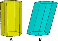 | Основания | Две грани, являющиеся конгруэнтными многоугольниками, лежащими в параллельных друг другу плоскостях. | , | ![]() |