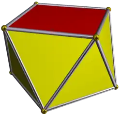 - многоугольная призма — это 3-мерная призма, полученная из двух многоугольников (один получен параллельным переносом другого), которые связаны прямоугольниками. Из правильного многоугольника {p} можно получить однородную n-угольную призму, представленную произведением {p}×{}. Если p = 4, призма становится кубом: {4}×{} = {4, 3}.