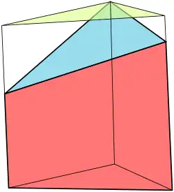 Усечённая призма — многогранник, который отсекается от призмы непараллельной основанию плоскостью[2]. Усечённая призма сама призмой не является.