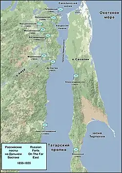 Первые официальные российские военные посты и поселения появились в Приамурье и Приморье в ходе Амурской экспедиции 1849—1855 годов. В 1849 году Г. И. Невельской на судне «Байкал» открыл Татарский пролив, доказав, что Сахалин является островом, а не полуостровом. В 1850 году он самовольно основал в устье Амура, на территории, согласно Нерчинскому договору принадлежавшей империи Цин, Николаевский пост и объявил эти земли владением Российской империи. Самоуправные действия Невельского вызвали недовольство и раздражение в правительственных кругах России, однако, выслушав доклад губернатора Восточной Сибири Николая Николаевича Муравьева, император Николай I наложил на доклад Особого Комитета знаменитую резолюцию: