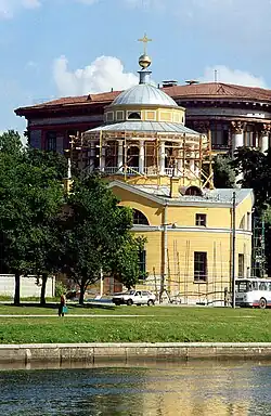 Один из наиболее любимых горожанами и бывших лучшими в столице по внутреннему украшению храмов, просторный и полный света.
