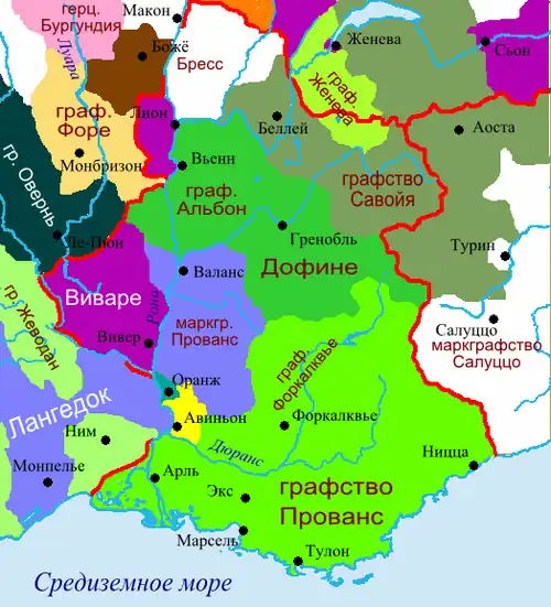 В 1030 году Вьеннское графство было разделено на графство д’Альбон (будущее Дофинэ) и графство де Морьенн (или Савойя).