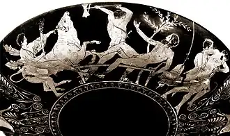 Деяния Тесея, центральный фрагмент — убийство Прокруста, ок. 420—410 годов до н. э.