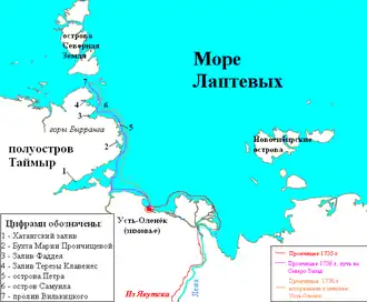 От высадки в Хатангской губе Прончищев отказался, не обнаружив там поселений, и судно направилось к прежнему Оленёкскому зимовью.