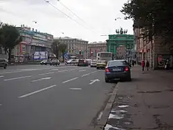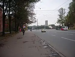 Начало проспекта, вдалеке видны Нарвские ворота Верстовой столб на улице Трефолева