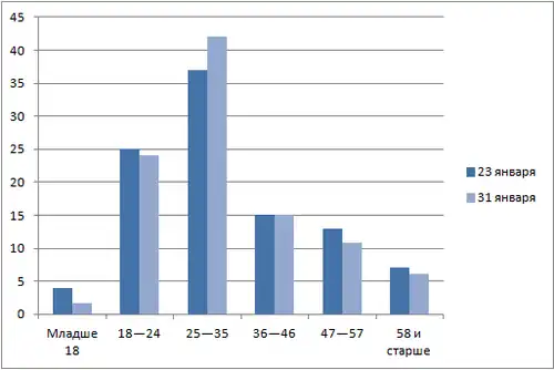 В свою очередь, представители оппозиции тоже заявляли о фактах распространения недостоверной информации о протестах. По их мнению, главный из них — это массовость участия в митингах несовершеннолетних. Активисты «Белого счётчика» Александра Архипова, Анна Чернобыльская и Ольга Карташова провели опрос участников акции протестов в Москве возле Пушкинской площади и на Тверской улице и сообщили, что среди 365 опрошенных лиц оказалось только от 1,7 % до 4 % несовершеннолетних (дети до 16 лет)[218][221], младше 18 лет было менее 10 % участников акций протеста[222][223].