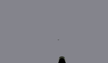 Изображение попаданий осколков снаряда зенитного орудия с замедленной скоростью. Не все осколки видны, попадания осколков снаряда в самолёт отмечаются красными точками