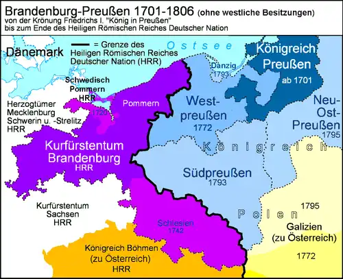 После смерти Фридриха в 1786 году его племянник Фридрих Вильгельм II продолжил разделы Польши, что позволило Пруссии получить значительную часть западной Польши в 1793 году.