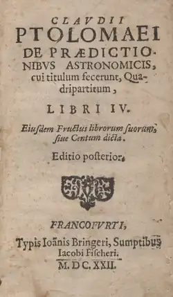 Кла́вдий Птолеме́й (др.-греч. Κλαύδιος Πτολεμαῖος, лат. Claudius Ptolemaeus; ок. 100 — ок. 170)[1] — античный учёный греко-египетского происхождения; астроном, математик, географ, механик, оптик и теоретик музыки. Жил и работал в Александрии Египетской (достоверно — в период 127—151 гг.[2][3]), где проводил астрономические наблюдения.