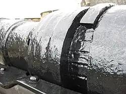 Разрыв на стволе кованой пушки. Хорошо видна сборка ствола из полос.