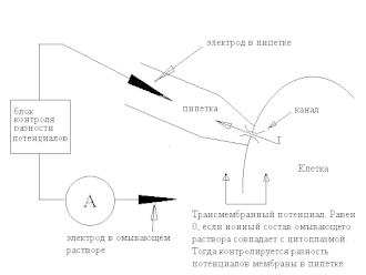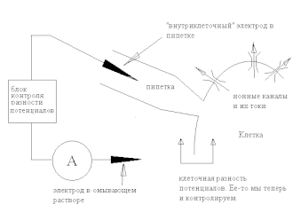 Схема 4. Принципиальная схема patch-clamp в конфигурации whole-cell.