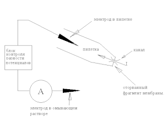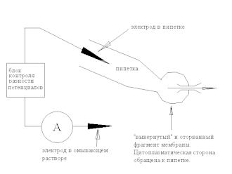 Схема 3. Принципиальная схема patch-clamp в конфигурации inside-out.