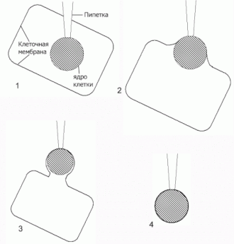 Интересная разновидность patch-clamp — nucleated patch. (Фиксация потенциала с клеточным ядром[11]).