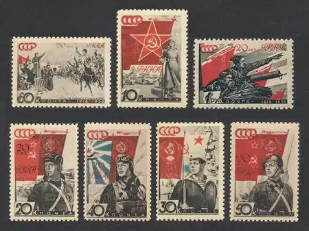 Теме РККА посвящено много почтовых марок, выпущенных в Союзе ССР.