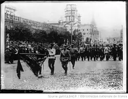 23 февраля (н. ст.) 1918 года было опубликовано воззвание СНК от 21 февраля «Социалистическое отечество в опасности!»[9], а также «Воззвание Военного главнокомандующего» Н. В. Крыленко, которое заканчивалось словами[9]: