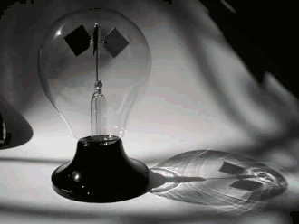 Давление воздуха внутри колбы не должно быть слишком низким и слишком высоким. Высокий вакуум внутри лампы будет препятствовать вращению, потому что не будет достаточного количества молекул воздуха, чтобы образовать воздушные потоки, которые вращают лопасти и передают тепло наружу, прежде чем обе стороны каждой лопасти достигнут теплового равновесия за счет теплопроводности через их материал. А при высоком давлении разницы температур будет не достаточно, чтобы поворачивать лопасти, так как увеличится сопротивление воздуха — воздушный поток затормозится прежде, чем достигнет противоположной стороны соседней лопасти.