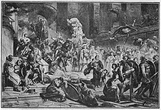 24 августа 410 года[~ 3] готы ворвались в Рим через Соляные ворота. Современник падения Рима, писатель из Константинополя Созомен сообщил только, что Аларих взял Рим изменой. Более поздние писатели передают уже легенды.