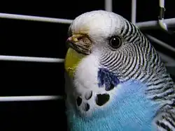 - Австралийские пёстрые голубые попугайчики: Основная окраска оперения брюшка, нижней части спины и крыльев такая же, как у голубых и голубых опалиновых попугайчиков. «Маска» белая, украшенная на шее чёрными горловыми знаками (у попугайчиков коричневого ряда и коричневых опалиновых птиц горловые знаки коричневые). Внешние горловые знаки частично перекрываются фиолетовыми или белыми пятнами щёк.
