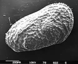 - Фораминиферы. Раковины фораминифер имеют различную форму, бывают однокамерными или многокамерными. По составу они могут быть органическими, агглютинированными из различных частиц, скреплённых органическим цементом, либо известковыми[6].