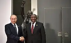 - ↑ Поздравление Сирилу Рамафосе по случаю избрания Президентом Южно-Африканской Республики. Президент России (16 февраля 2018). Дата обращения: 22 февраля 2018. Архивировано 23 февраля 2018 года.