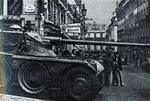 • Восставшие части двигались по Авенида ди Либердади к зданиям Министерства национальной обороны, радиостанции и телеграфа на площади Коммерсио.