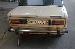Автомобильный номер физических лиц Передний автомобильный номер юридических лиц Задний автомобильный номер юридических лиц и мотоциклов (уменьшенного размера) Военный передний автомобильный номер Военный задний автомобильный номер