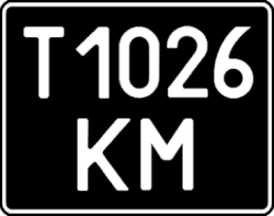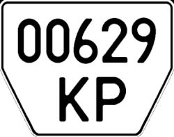 Передний автомобильный номер физических лиц (сверху) и юридических лиц (снизу) Задний автомобильный номер юридических лиц и мотоциклов (уменьшенного размера) Прицепной автомобильный номер Тракторный номер Номер тракторных прицепов