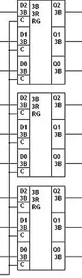- ↑ http://www.bashedu.ru/perspage/wsap/posobie/chapter3/6.htm (недоступная+ссылка) Основы цифровой электроники. 3.6. Регистры. Регистры сдвига. Рис. 3.27. Регистры сдвига на D-триггерах а), RS-триггерах б) и комбинированный регистр на D-триггерах