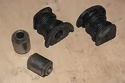 Различают резинометаллические шарниры, работающие преимущественно на кручение (с наружной обоймой, с внутренней обоймой, двухобойменные, эксцентричные), и работающие на сжатие с изгибом (опоры, подушки).