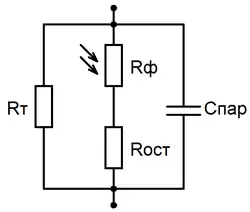 Эквивалентная схема фоторезистора состоит из трёх сопротивлений: