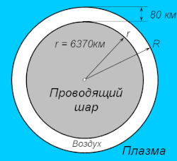 Рассмотрим объёмный резонатор, состоящий из двух концентрических проводящих сфер[1]. Внутренняя сфера представляет собой поверхность Земли, а внешняя — ионизированный газ ионосферы, находящийся на высоте около 80 км над Землёй.