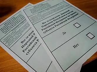 - ↑ Olga Aivazovska. Rigged Russian referendums: Putin’s plan to annex occupied Ukraine (англ.). Atlantic Council (4 сентября 2022). Дата обращения: 14 марта 2023. Архивировано 14 марта 2023 года.