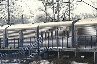 Пятивагонная секция: посередине — служебный вагон с жилыми помещениями и дизель-генераторными установками