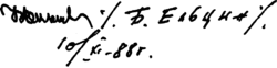 Автограф Б. Н. Ельцина 10 ноября 1988 года. Месяц указан римскими цифрами