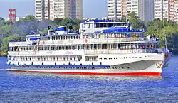 | сентябрь 1954 | 13003 | ![]() | Алексей Толстой | ВОРП, Горький | ранее Н. Гастелло; модернизирован, надстроена ещё одна палуба; в 2010-х имел необычную двухцветную окраску с чёрно-синим низом по подобию морских лайнеров начала-середины XX в. | ||